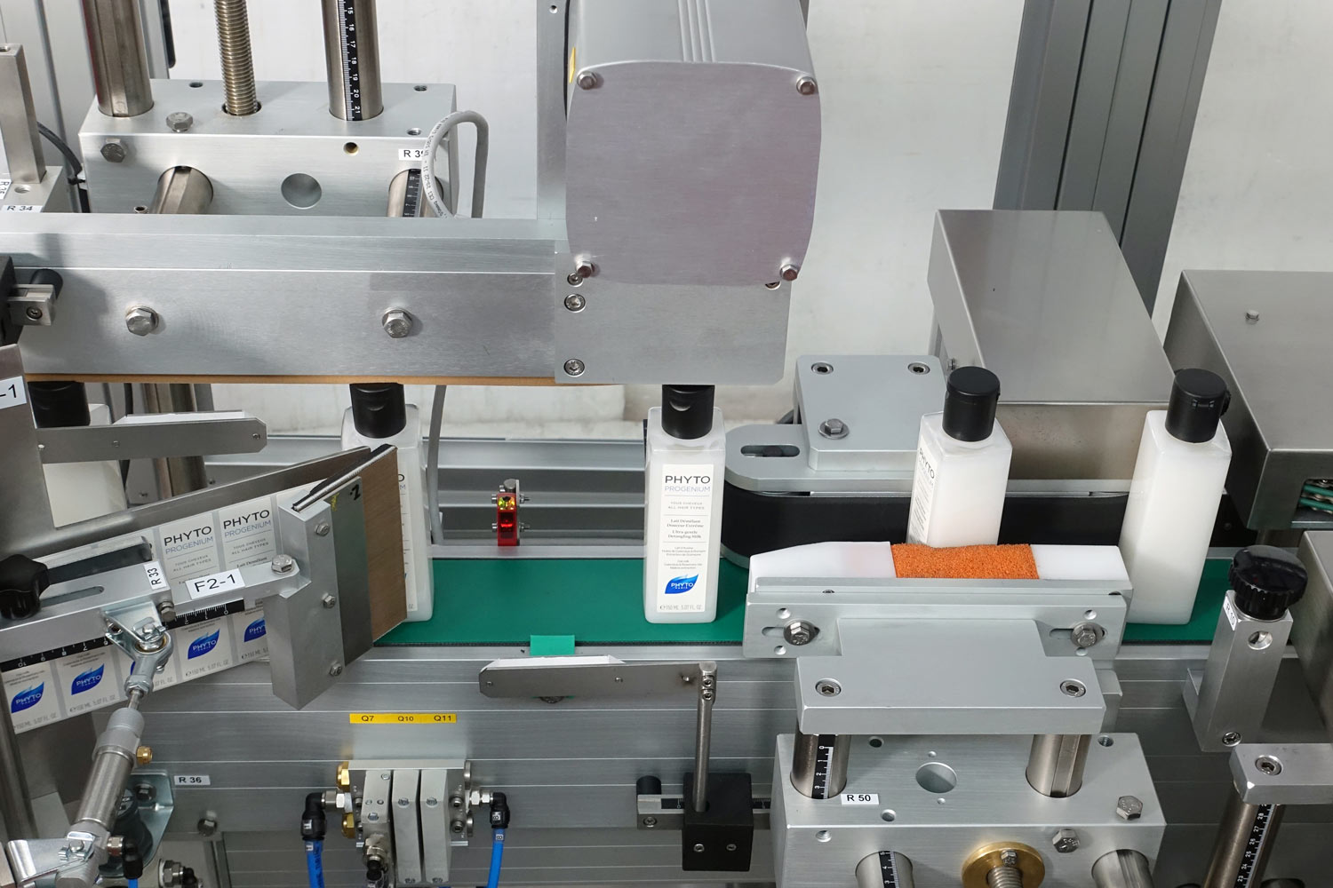 The cosmetic company Phytosolba-Alés Groupe – manufacturer of the brands Lierac, Jowaé, Phyto, Kydra, Secret Professionnel, Subtil- was looking for an industrial labelling system to label two types of products, quadrangular and elliptical, being able to manage the whole process from a single operator side.This specific need was due both to the considerable development in length of the production line, and to the reduced availability of space within the plant that would have limited the possibility of access to the system.