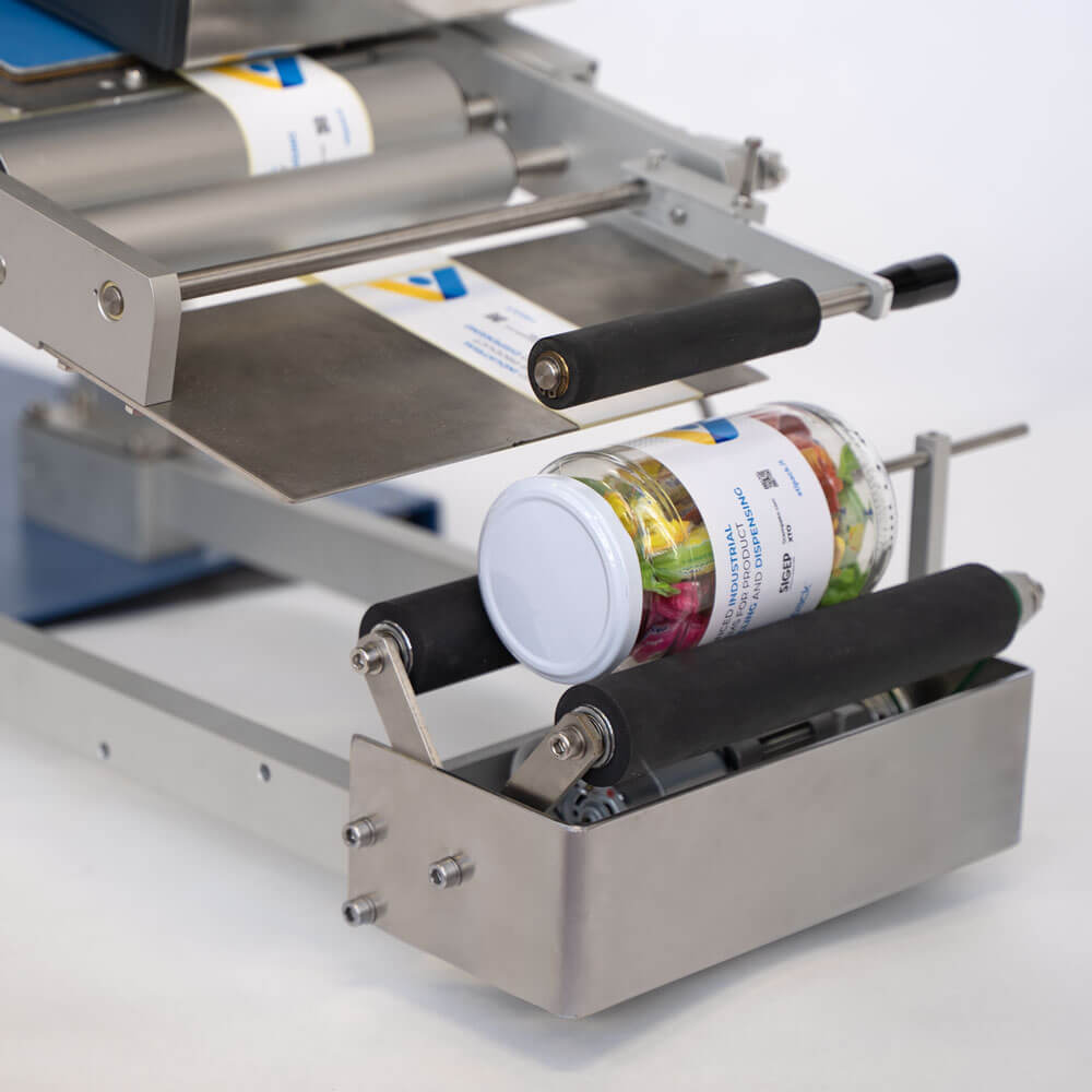 L’applicatore di etichette supportabobine fino a 280 mm di diametro  assicurando una buona autonomia di produzione; può essere completato con accessori che ne arricchiscono le funzionalità, quali  posizionatori a rulli motorizzati per l’etichettatura dei prodotti cilindrici, posizionatori per prodotti quadrangolari o applicatori pneumatici personalizzati.